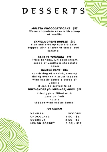 Carefully prepared by our wonderful chefs at Mr Chow, we hope to please you with our extensive Asian-Fusion menu.